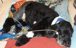 This is our sweet sanctuary dog Charles and we are very worried about him. He had surgery to repair his hip and, after what seemed a successful operation, something went terribly wrong. He hemorrhaged at the incision site, had to have multiple transfusions, repeated courses of oxygen, and many medications. He is in intensive care at a specialty hospital. His foster family is in constant contact with the hospital and everyone is making sure his quality of life is the primary focus. While his recovery is far from certain the ICU staff who monitor him around clock say he has improved each day. He recognizes his family and tries to follow them out of the kennel despite being attached to various I/V lines. He is fighting hard to go home and we have to find a way to match his efforts. The cost of his supportive care has hit $6000 and may reach $8000 but without it he will not survive. We took him down this road with all good intentions. Please, please help us give him a chance to get back home.