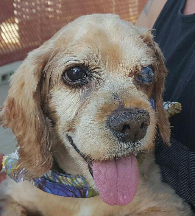 they cared for him over his life. He had an untreated injury to his eye, that if treated when it happened, would have saved the eye. Instead, he has been in agony for weeks and will now lose his eye. His teeth are beyond bad. Many of them have abscesses and are rotten. He has two terrible infections in both ears. You would think that would be more than most dogs can deal with, but he was also covered in tar, on one side.